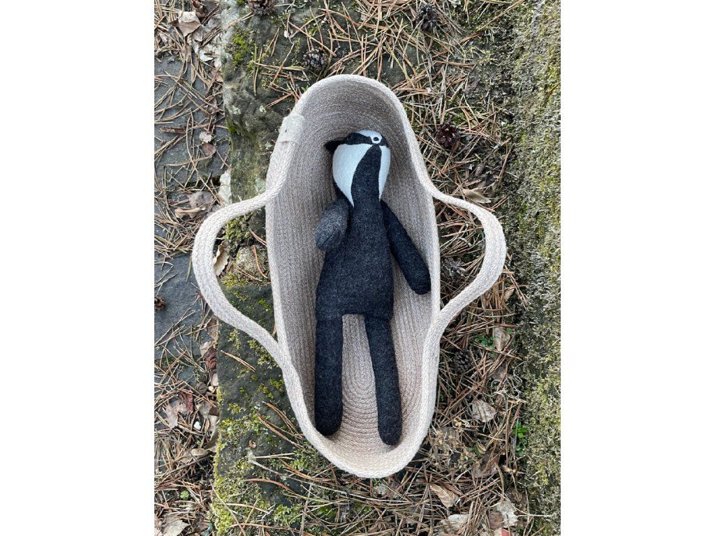 Set košíku a postavičky vlněného jezevce - vlňáka - ručně vyráběné designové zvířátko z vlněné metráže a ovčího rouna. Každý vlňák je originál s ručně vyšívanými detaily. Lehký, bezpečný, krásný. Tradiční plstěné hračky v moderním designu pro ty, kdo mají rádi originální a kvalitní věci.